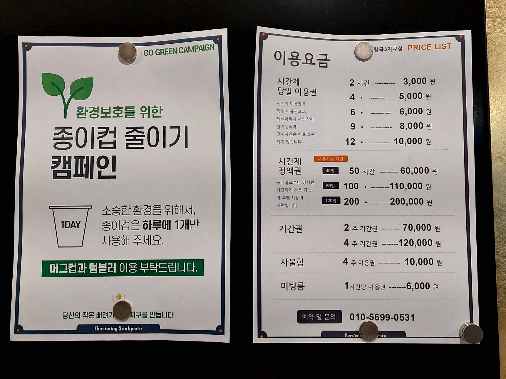 주 고객층은 나름 정숙하고 장시간 집중력이 필요한 성인과 수험생이라는 게 느껴졌다.