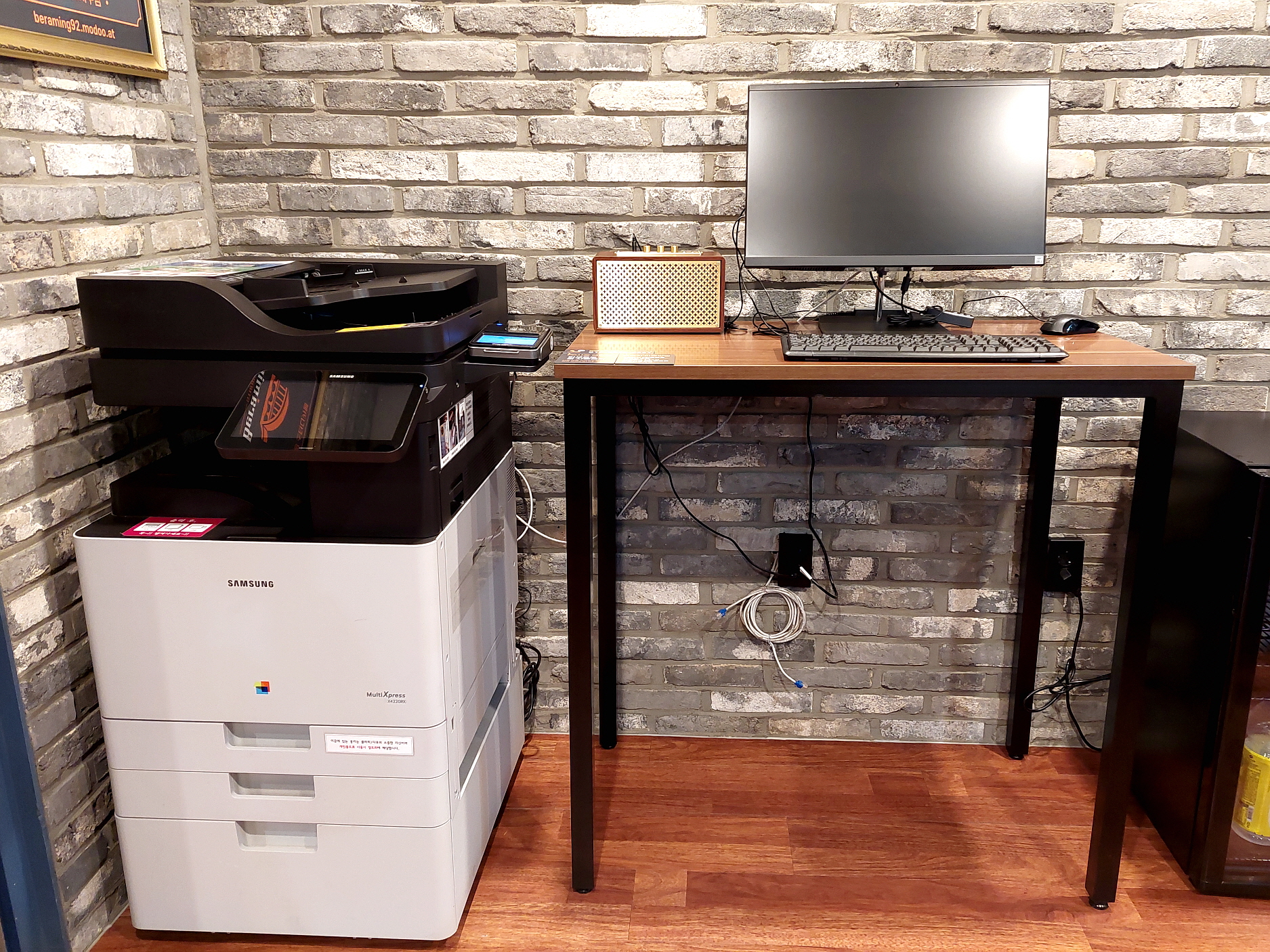 공부하는 공간과 분리되어 있고 휴식공간 겸 음료를 제공하는 탕비실 겸 프린트를 이용하는 편의시설을 제공했다.