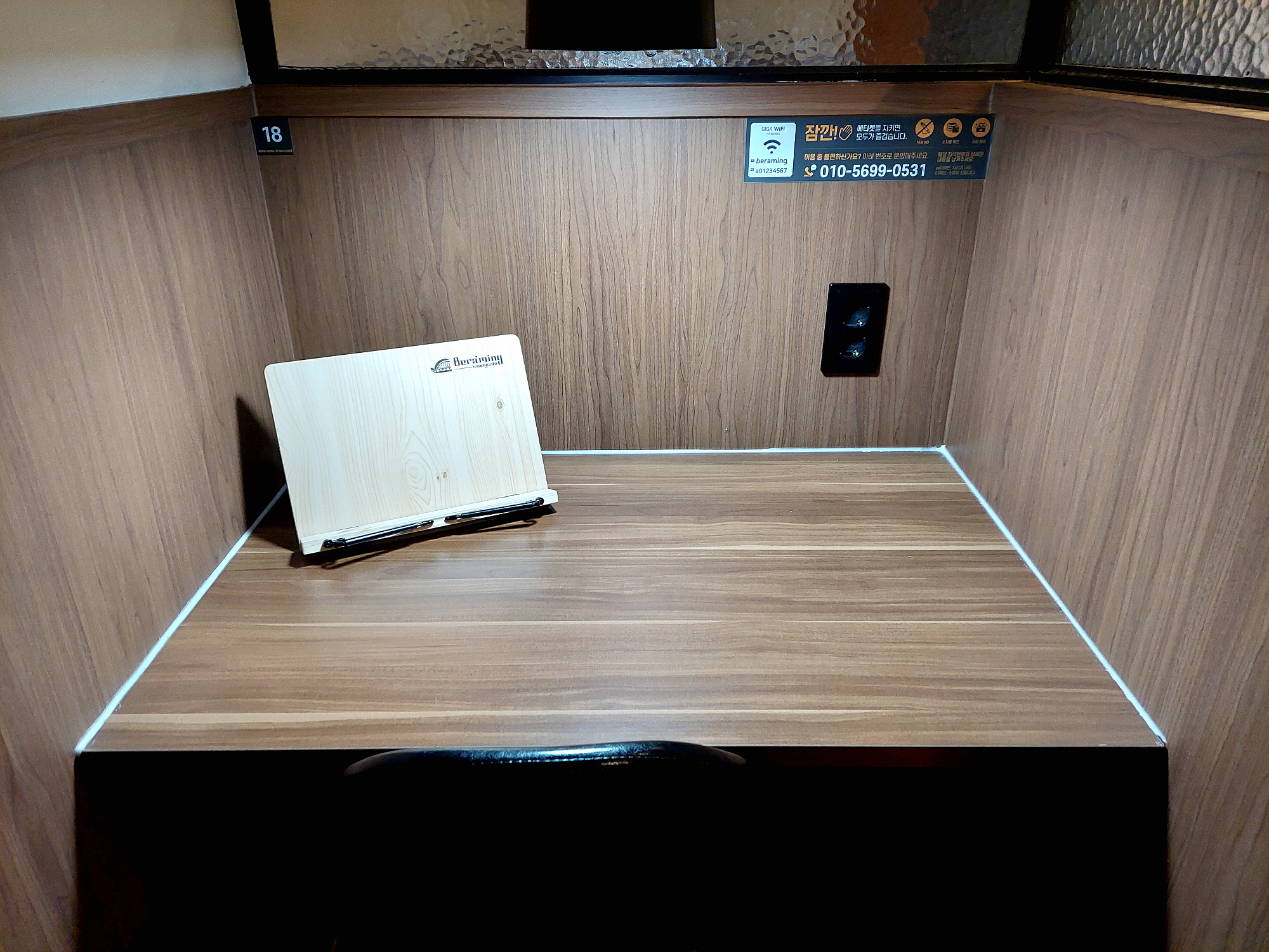 다른 공간에서도 태블릿 PC로 인강 정도라면 괜찮겠지만 타이핑이나 마우스 터치로 소음이 조금이라도 있는 경우에는 중문으로 분리된 이곳을 이용해야 한다.
