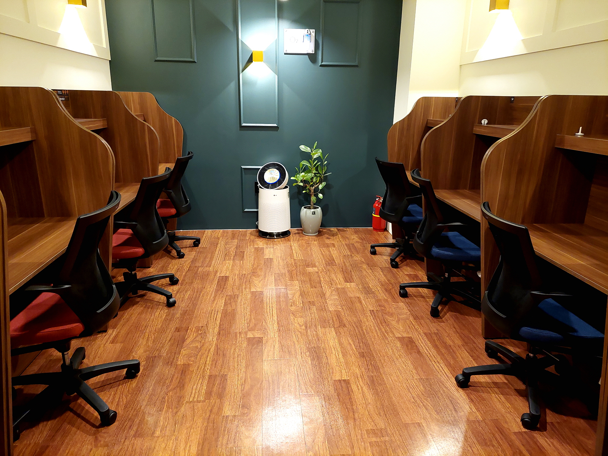 나머지는 공간들은 모두 칸으로 나눠진 1인 1책상으로 도서관 열람실 같이 오픈 좌석이 없다.