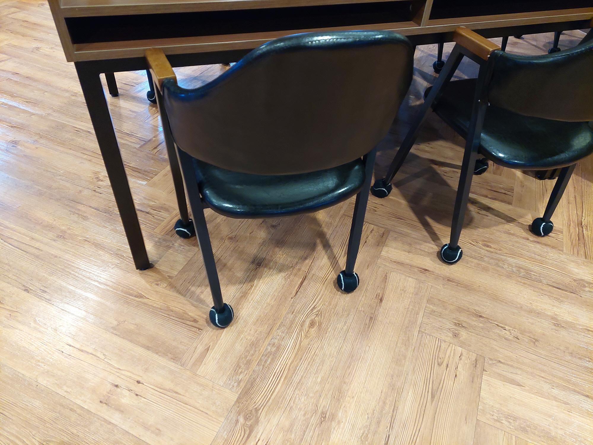 모든 자리에 깔끔하게 전기 콘센트가 설치되어 있는 것도 그렇고, 바퀴 없는 의자에는 모두 검은 테니스공이 끼워져 소음을 방지한 것도 그렇다.