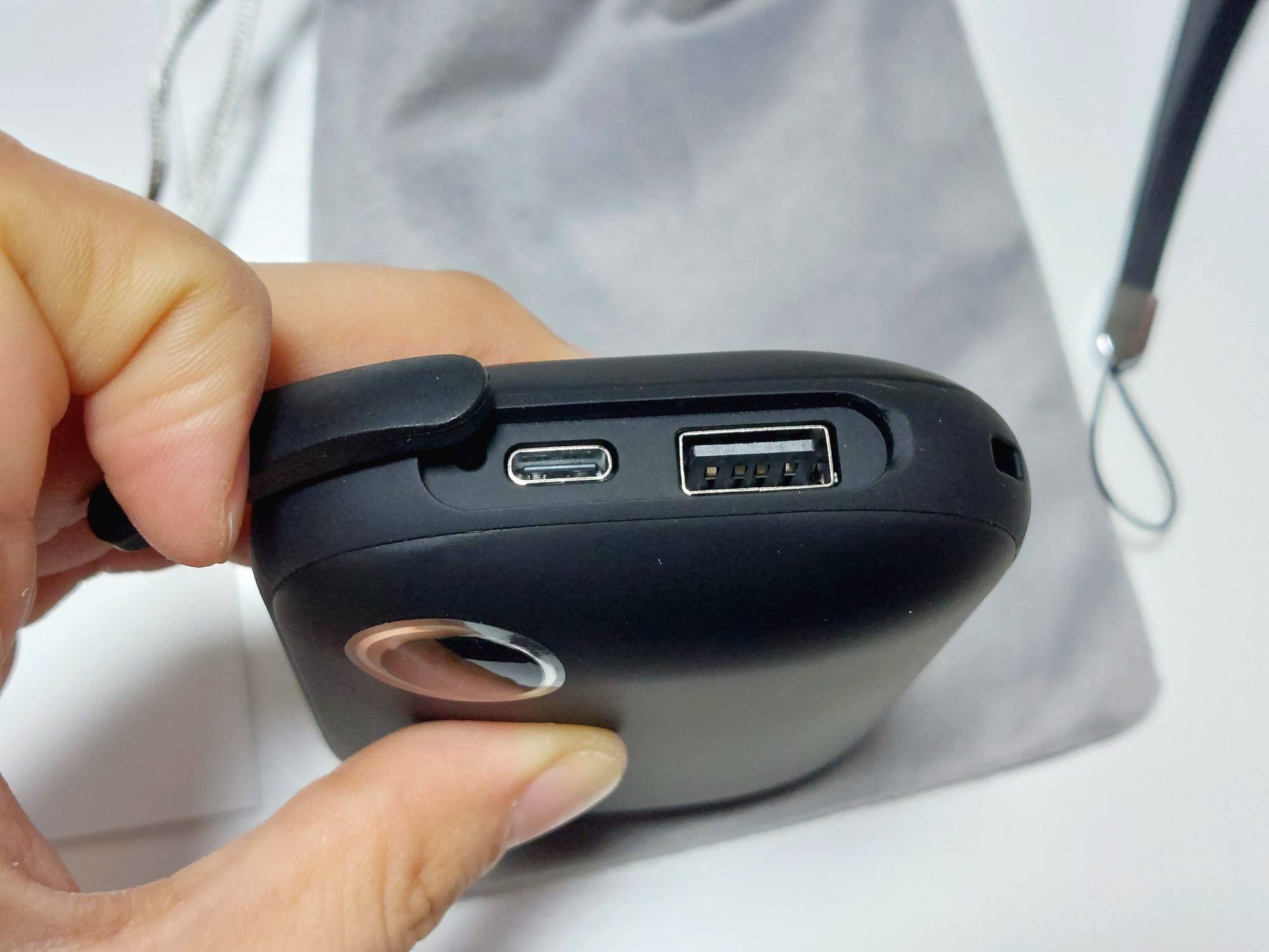 왼쪽 C타입 단자는 손난로를 충전할 때 사용한다.