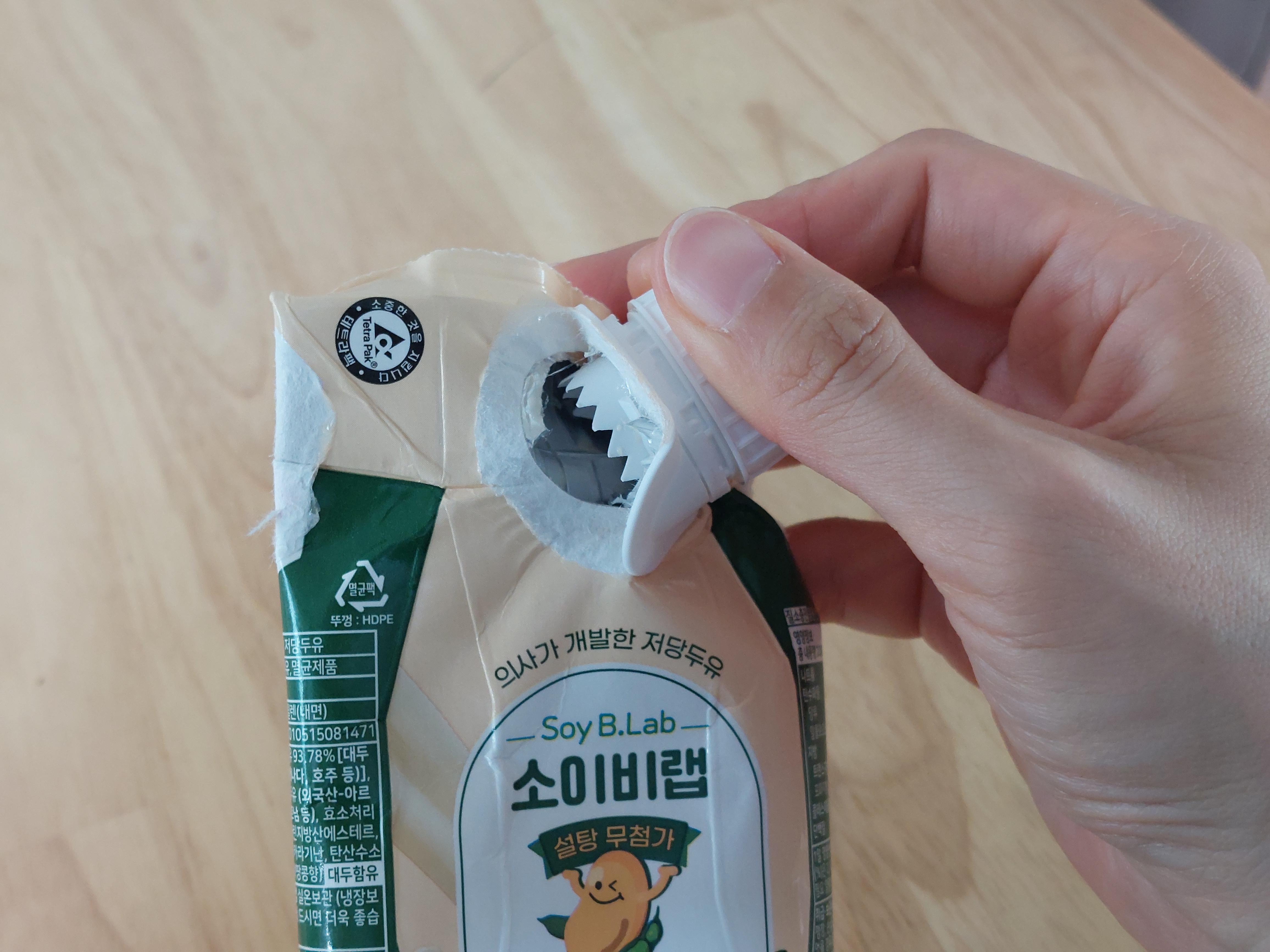 대부분 다른 두유는 팩에 밀봉되어 있어 한 번 뜯으면 다 먹거나 버려야 하는데 소이비랩 저당 두유는 가방에 넣고 조금씩 나눠 마시며 가지고 다닐 수 있어서 좋습니다.